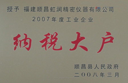 虹潤公司榮獲 “2007年納稅大戶”榮譽稱號