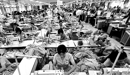 一家紡織企業(yè),女工們正在忙碌地工作。與大型國企相比,中小企業(yè)受高息影響較小。 [/align]