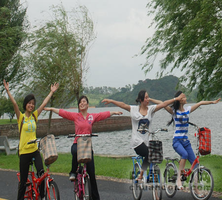 有人說過一句話:在深圳如果要請客吃飯,還不如請他出一身汗!就沖著這句話,我們這次游湖的主要形式就是:騎自行車。