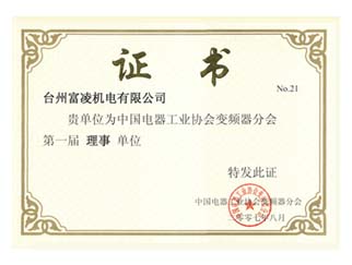 臺州富凌機電有限公司榮幸地成為中國電器工業(yè)協(xié)會變頻器分會第一屆理事單位,富凌變頻將以更加優(yōu)秀的品質(zhì)和完善的服務(wù)為中國變頻器工業(yè)作出應(yīng)有的貢獻。