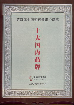 普傳科技榮獲“第四屆中國(guó)變頻器用戶滿意十大品牌”稱號(hào)